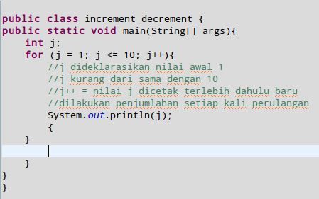 disini kita belajar increment dan decrement yang menggunakan operator ++ dan --
