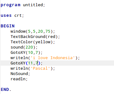 statement tambahan(warna,suara dan window).