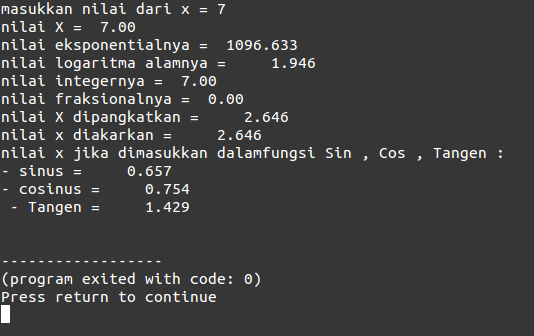 #Exp[fungsi] menghitungnilai pangkat dari bilangan e(bilangan alam) yaitu sebesar x. sintaks : Exp(x); x dapat bertipe real atau integer dan akan menghasilkan nilai bertipe real.